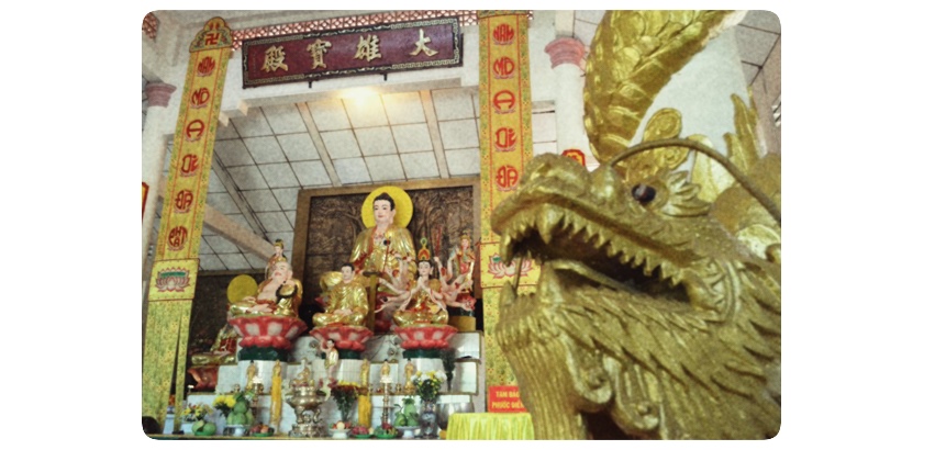 – Bên trong chánh điện là được bày trí mộc mạc, đơn giản, thờ tượng Phật và các vị Bồ Tát.