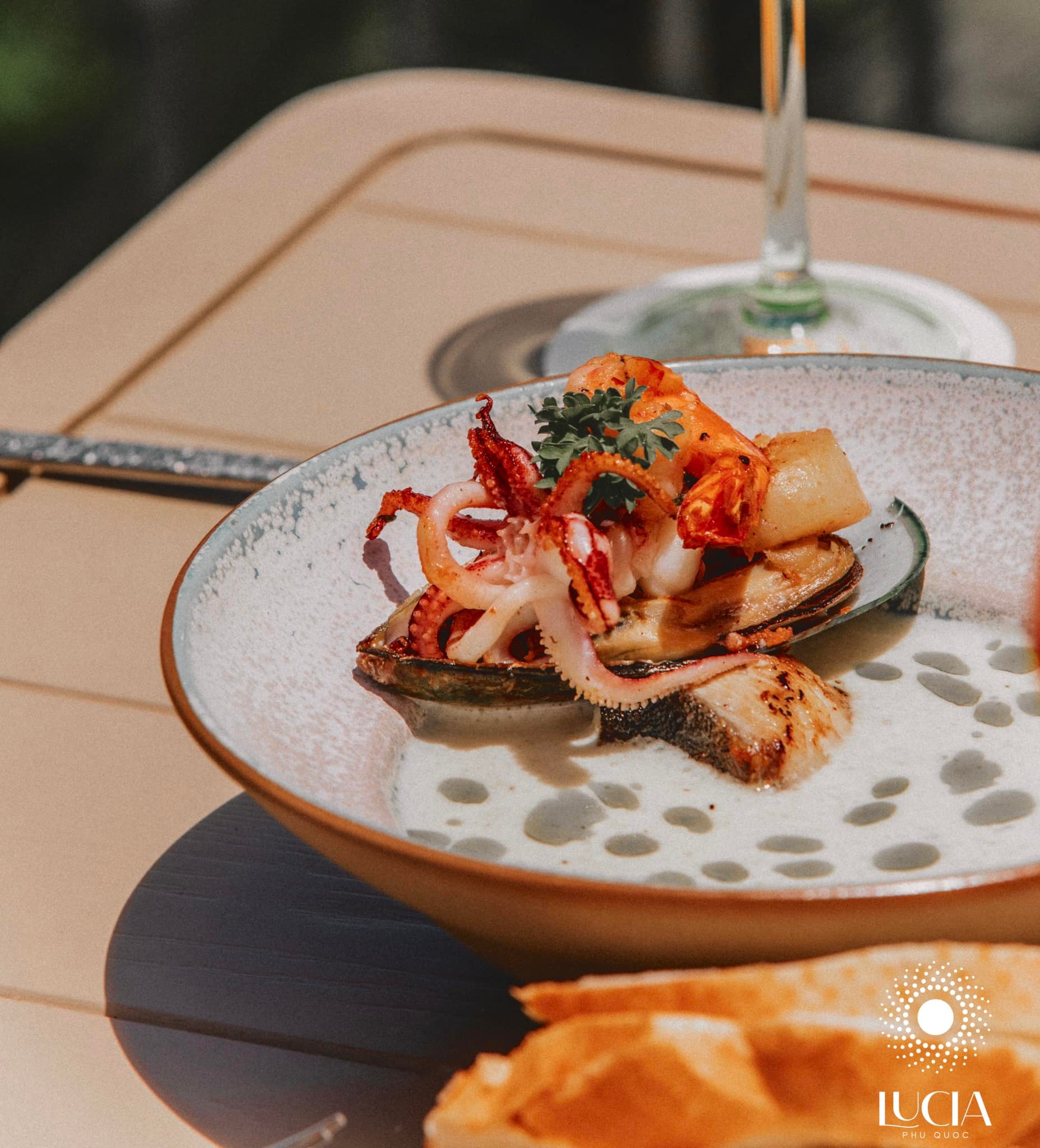 – Lucia Mixology & Eatery Sunset Town là nhà hàng kết hợp beach bar mang phong cách Địa Trung Hải tọa lạc tại Sunset Town – Thị trấn Hoàng Hôn.