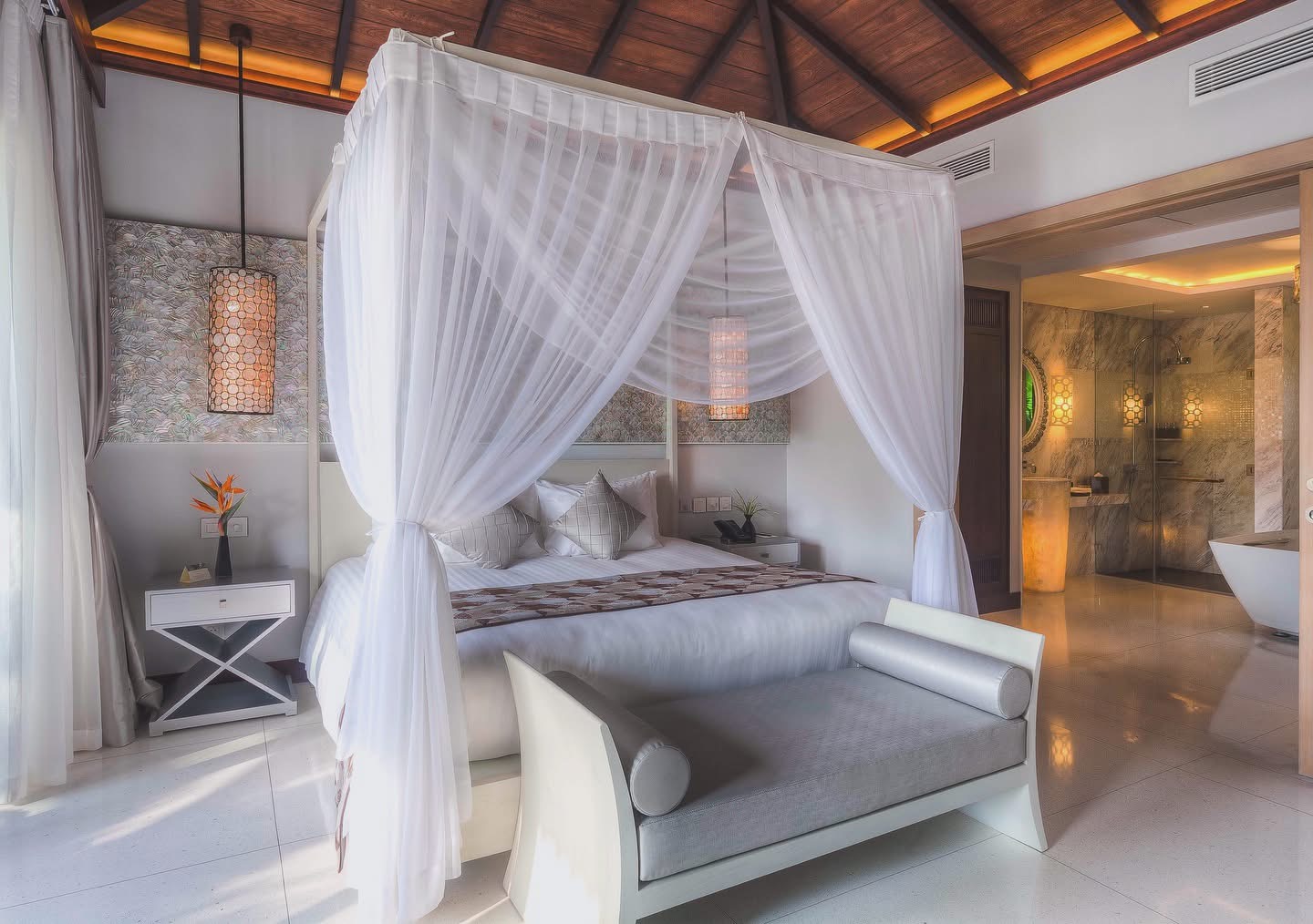 – Thoải mái nghỉ ngơi trên chiếc giường rộng rãi dưới tấm rèm buông lơi, trong khi tận hưởng những tiện nghi hiện đại.