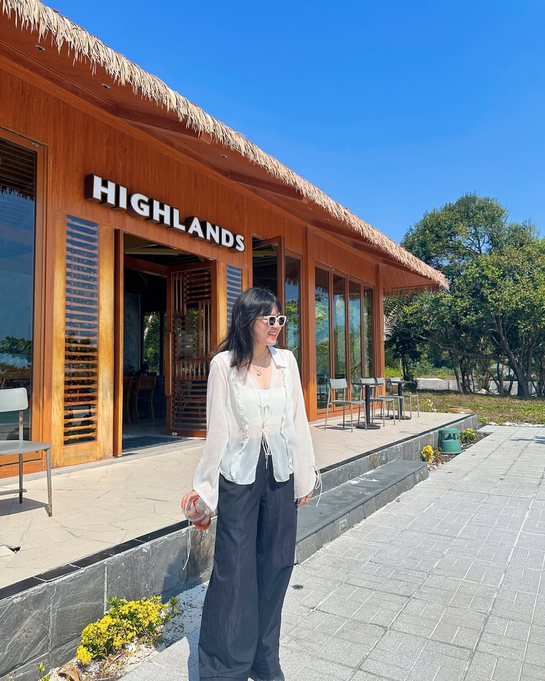 – Quán tọa lạc ngay trên bãi cát trắng và tầm nhìn hướng thẳng ra biển, Highland là một trong số ít quán cà phê có góc nhìn thoáng đẹp tại Bãi Sao – nơi nổi tiếng với biển trong và cát trắng mịn.