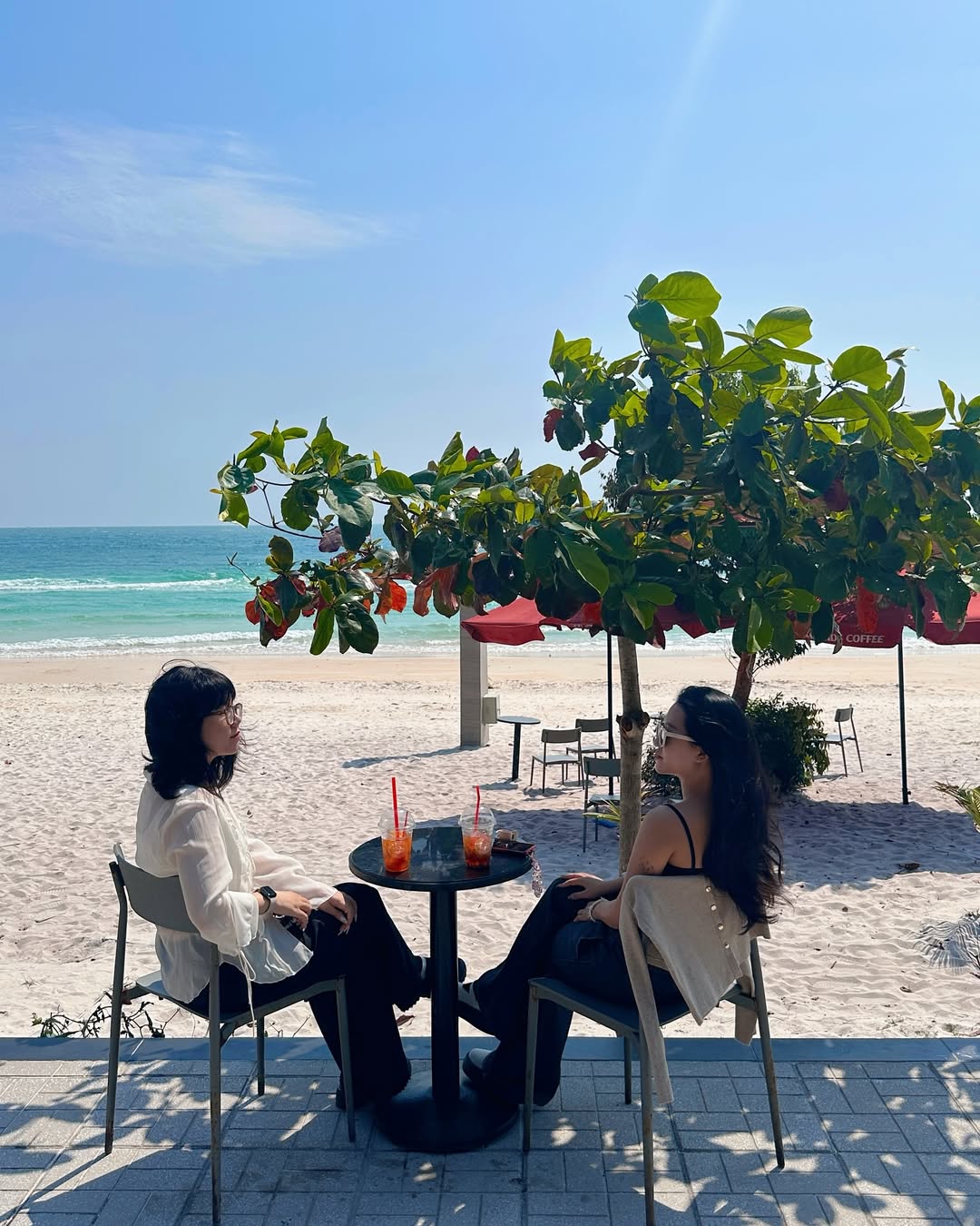 – Một trong những trải nghiệm đáng giá tại đây không thể bỏ qua chính là, thưởng thức ly cà phê dưới mái hiên của Highland và tận hưởng làn gió biển và ngắm mặt trời hoặc dải mây phản chiếu lên làn nước trong xanh. Chụp ảnh sống ảo trên nền cát trắng.